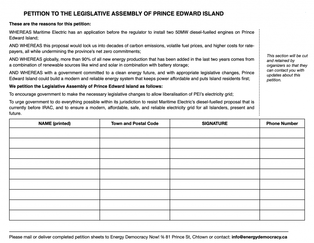Please help collect signatures for Energy Democracy Now! Co-operative’s petition to the Legislative Assembly.